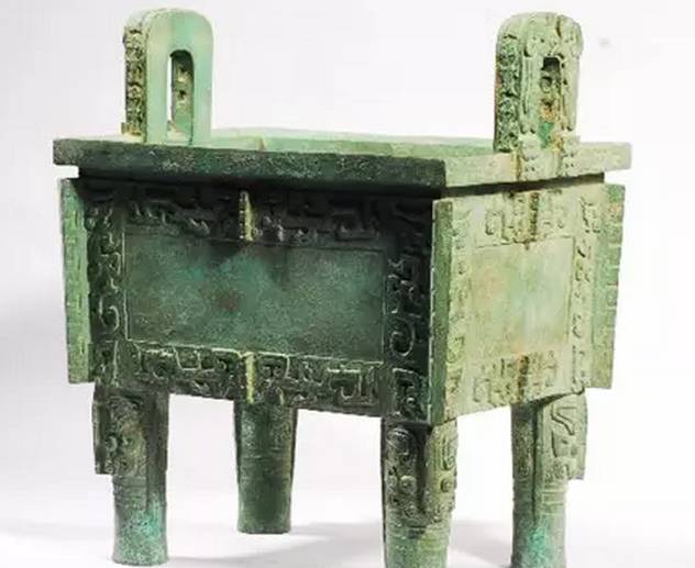 青铜器,为司母戊鼎,全称为后母戊大方鼎,因鼎腹内壁上铸有"后母戊"三字得名,鼎呈长方形,口长112厘米、口宽79.2厘米,壁厚6厘米,连耳高133厘米,重达832.84公斤。鼎身雷纹为地,四周浮雕刻出盘龙及饕餮纹样,反映了中国青铜铸造的超高工艺和艺术水平。1939年3月在河南安阳出土,是商王祖庚或祖甲为祭祀其母戊所制,是商周时期青铜文化的代表作,现藏于中国国家博物馆。